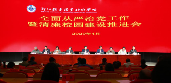 黄道平书记在讲话中对学校2019年从严治党工作情况作简要回顾,传达习近平总书记考察浙江时的重要讲话精神,以及中共中央《党委(党组)落实全面从严治党主体责任规定》、中共浙江省委《关于深化推进新时代高校党建工作的意见》等文件精神和省机电集团公司党委书记谢平在集团2020年工作会议上的部署要求,深入分析新时代党建工作的新形势和新挑战,就2020年从严治党工作作了动员部署,并对学校领导干部和广大党员进行集体廉政谈话。