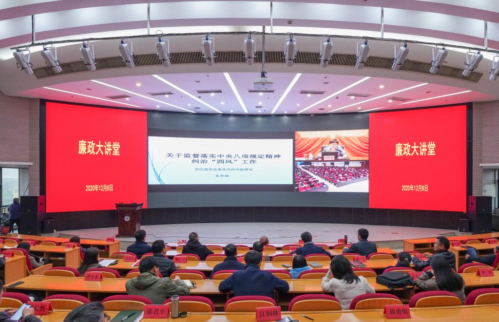 为深化落实全面从严治党、推进学校“清廉校园”建设,进一步推动落实中央八项规定精神往深处走,往实处落,学校党委、纪委于12月8日下午在综合楼四楼报告厅举办了第十八期“廉政大讲堂”。党委书记汤兆武及党委班子其他成员、全体中层干部、各党总支纪检委员参加会议。会议由纪委书记王斌主持。