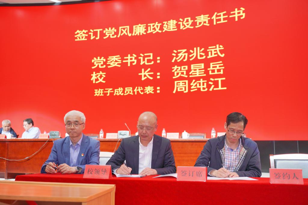 会上,党委书记汤兆武、校长贺星岳分别与班子成员代表副校长周纯江,二级党总支代表、职能部门代表、二级学院代表签订2021年度《党风廉政建设目标责任书》《党建工作责任书、意识形态工作责任书》《平安校园建设目标责任书》《反间谍安全防范责任书》《年度部门工作目标责任书》,副校长王建林与职能部门代表签订《党风廉政建设目标责任书》。