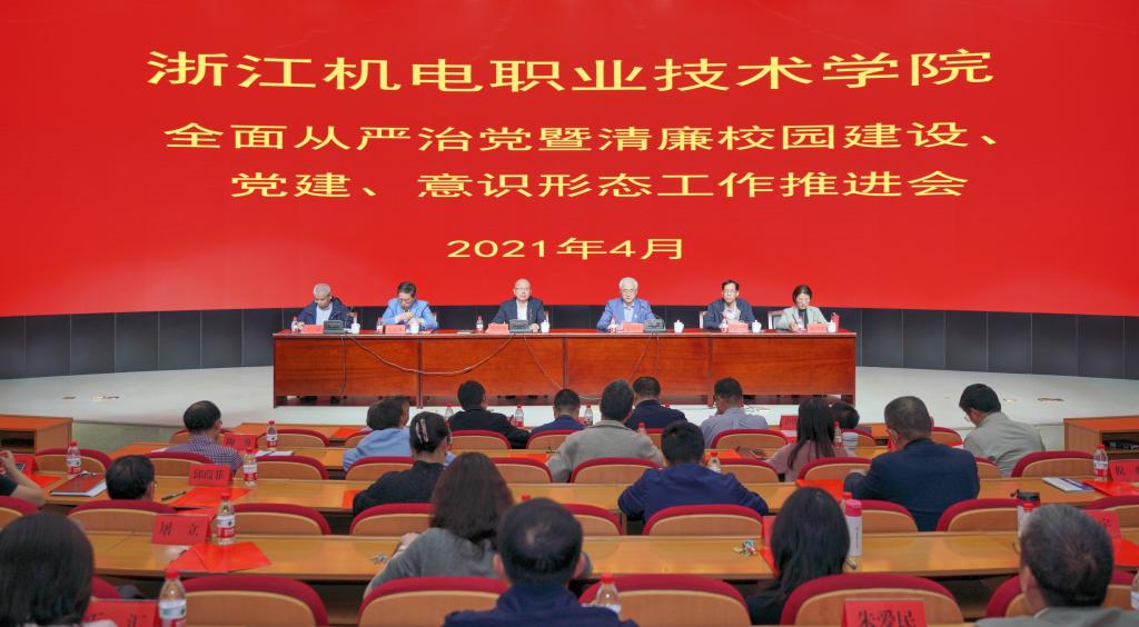 4月21日下午,学校召开全面从严治党工作暨清廉校园建设、党建、意识形态工作推进会,贯彻落实习近平总书记关于推进全面从严治党向纵深发展的重要指示精神、十九届中央纪委五次全会、省委十四届八次全会和省纪委十四届六次全会部署、全省教育系统全面从严治党工作暨“清廉学校”建设推进会相关要求,回顾总结2020年学校全面从严治党及党风廉政建设工作情况,部署2021年全面从严治党工作暨清廉校园建设、党建、意识形态工作。党委书记汤兆武作“党建统领 铸魂聚力 为学校改革升本提供坚强政治保障”的主题讲话,纪委书记王斌作党风廉政建设工作报告。学校领导班子、纪委委员、全体中层干部、党支部书记参加会议,会议由校长贺星岳主持。