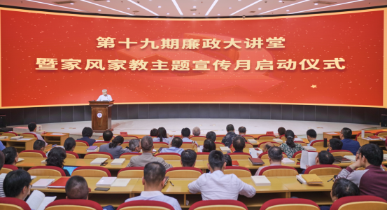 5月19日下午,第十九期“廉政大讲堂”暨家风家教主题宣传月启动仪式在综合楼四楼报告厅隆重举行。会议由纪委书记王斌主持,党委副书记、学院院长贺星岳作了动员讲话。学校党政领导、全体中层干部、党支部书记参加启动仪式并观看了专题片《正风反腐就在身边----严正家风》。