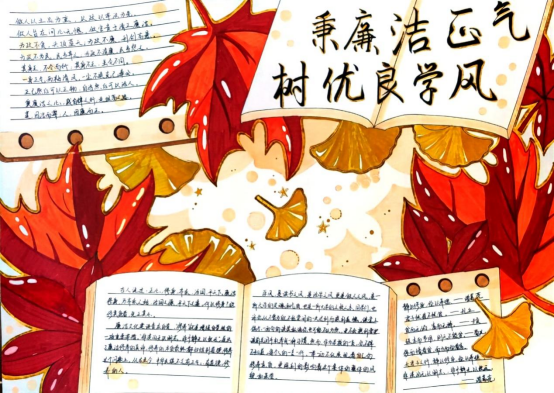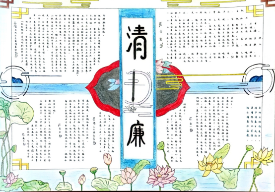 手抄报大赛如火如荼展开,同学们创新思维,开拓视角,用形象生动的图画、构图绘画出丰富多样的手抄报作品,中国传统文学与现当代文学的结合,精辟简洁的总结……图画内容与文字内容的完美结合,让一幅幅作品展示出同学们对于廉政文化的深刻理解。手抄报大赛共收到学生作品160余份,评选出一等奖3份,二等奖6份,三等奖9份,优胜奖6份。活动效果显著,同学们廉洁自律和规矩法纪意识得到增强,廉政文化引领作用和育人功能得到彰显,校园廉洁文化氛围更加浓厚。