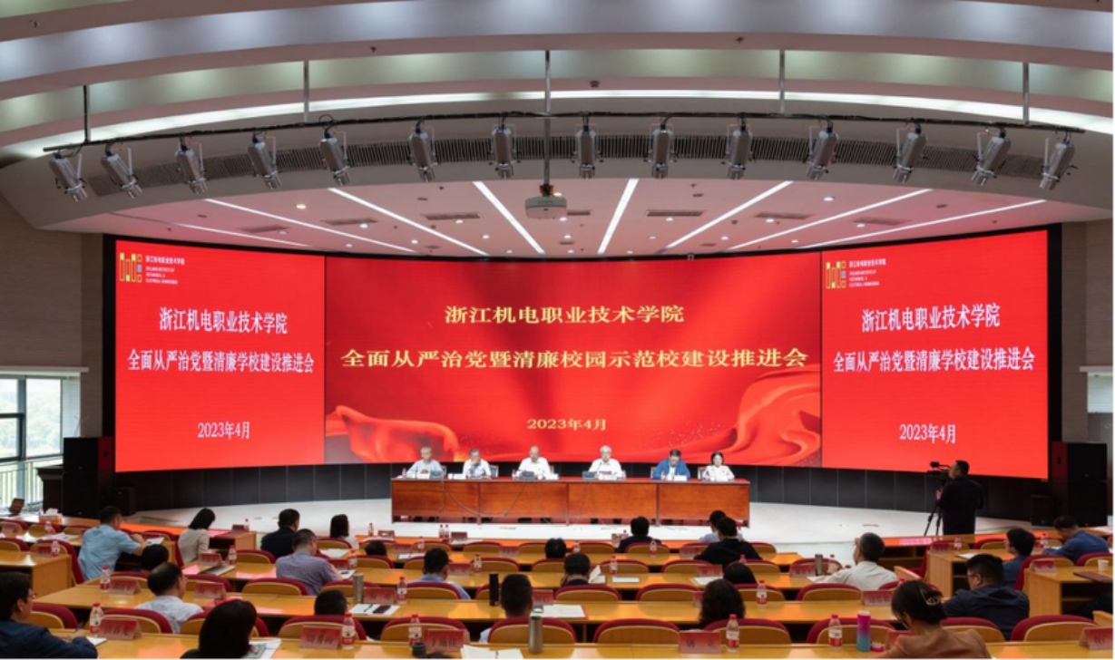 4月19日,浙江机电职业技术学院召开全面从严治党暨清廉学校建设推进会,传达学习二十届中央纪委二次全会、省纪委十五届二次全会会议精神和省机电集团、省教育系统全面从严治党工作会议要求,回顾总结2022年工作,明确落实2023年任务。校党委书记汤兆武、校长贺星岳,校领导班子成员周增逵、王建林、王斌、邓劲莲出席会议,全体中层干部等参加会议。