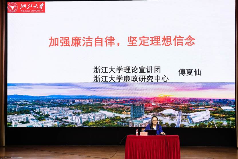 学校邀请到浙江大学廉政研究中心副主任、马克思学院傅夏仙教授为新生们带来廉洁教育第一课,题为《加强廉洁自律,坚定理想信念》。傅教授以从古至今的廉洁名人名事为主线,以《论语》等古诗词为切入点,带领同学们深刻学习了“廉洁”的意义,并以习近平总书记“廉洁修身、廉洁齐家”的要求寄语同学,青年是祖国的未来、民族的希望,也是我们党的未来和希望,希望同学们在今后的学习、生活中坚守“敬廉崇洁”,铸牢廉洁意识和法纪意识。