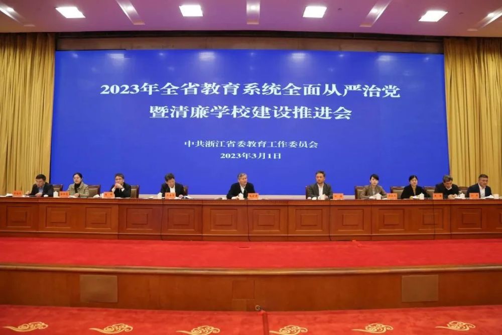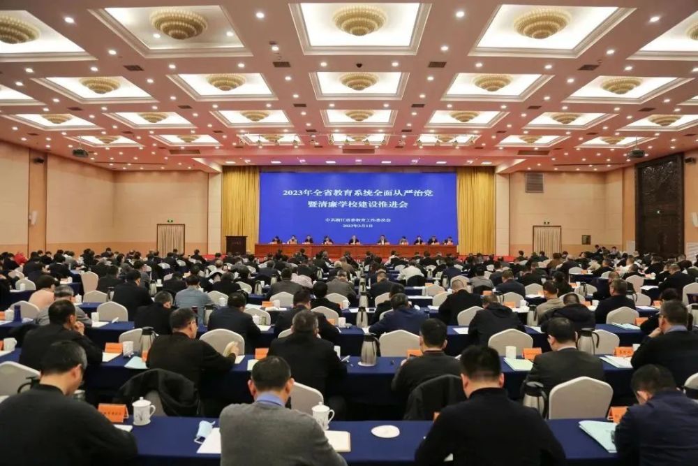 3月1日上午,2023年全省教育系统全面从严治党暨清廉学校建设推进会在杭州召开。会议强调,全省教育系统要深入学习领会习近平总书记关于全面从严治党的重要论述,贯彻落实二十届中央纪委二次全会和省纪委十五届二次全会部署要求,推进教育系统全面从严治党向纵深发展,为建设中国式现代化教育示范省提供坚强保障。省委教育工委副书记,省教育厅党组书记、厅长毛宏芳,省监委委员叶强出席会议并讲话,省委教育工委专职副书记、省教育厅党组副书记陈春雷主持会议,省委教育工委委员、省教育厅党组成员、省纪委省监委驻省教育厅(省委教育工委)纪检监察组组长王健部署纪检监察工作。