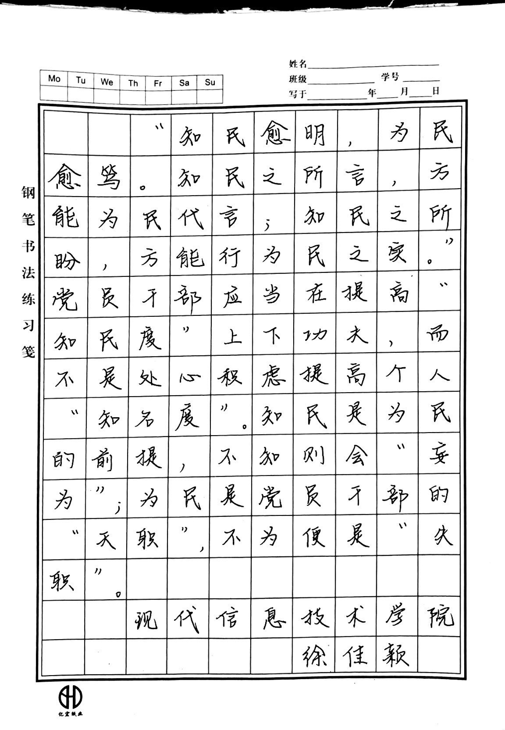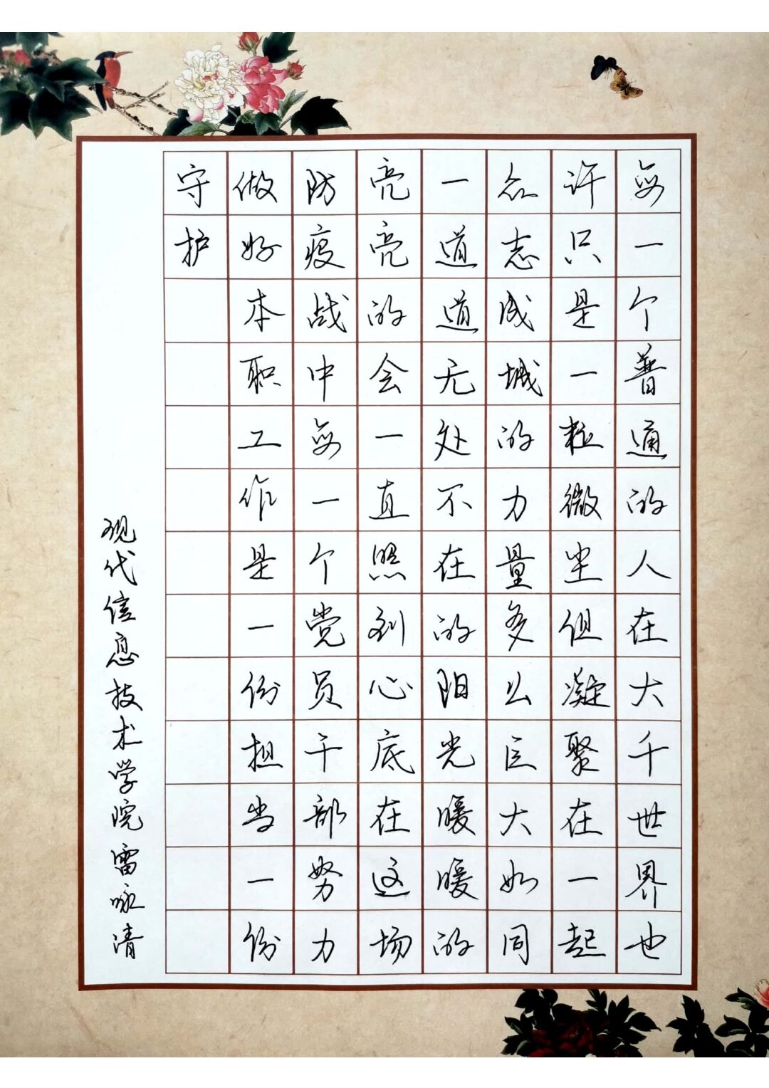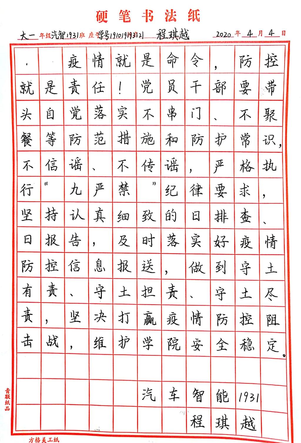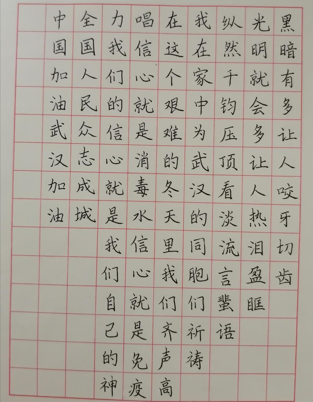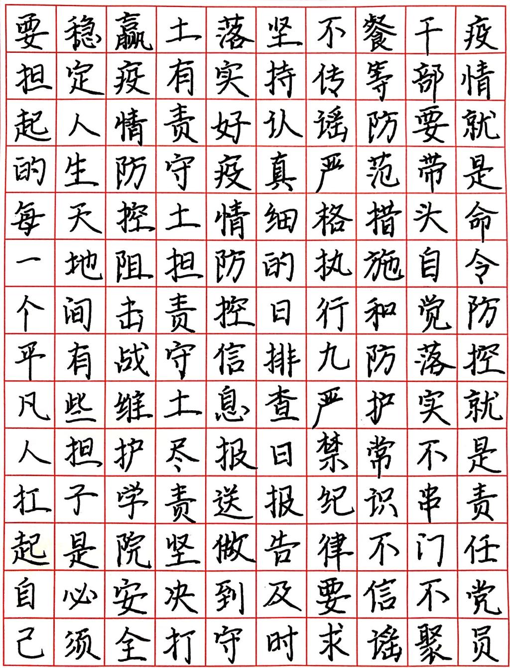 “抗击疫情 艺起行动”师生清廉文化硬笔书法大赛作品展示——学工作品
