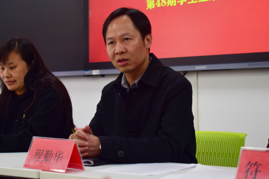 2021年11月10日下午13:00,数字商贸学院在4-317召开了第48期学生业余党校的开班典礼。数字商贸学院党总支书记程勤华,党总支副书记符强,会计专业党支部书记李君出席本次开班典礼。