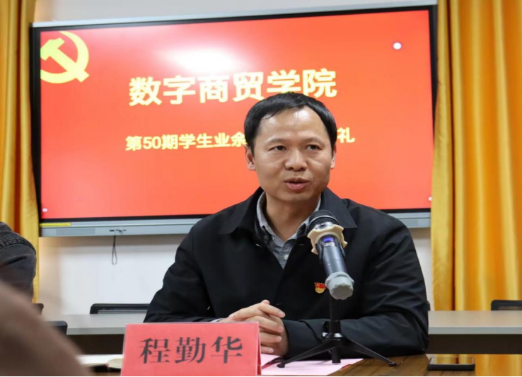最后,数字商贸学院党总支书记程勤华作重要讲话,他从四个方面对学员做出殷切希望:第一要树立远大理想。程书记借哈佛大学的一个关于目标对人生影响的跟踪调查案例向学员阐述要树立远大的人生理想和目标的重要意义,只有坚定朝理想奋进才能成功。第二要端正入党动机。入党是为了崇高的理想信念,为实现共产主义添砖加瓦。第三要严格要求自己。要求学员们做人做事都要讲规矩,要带头做好表率作用,展现数字商贸学院风采。第四要争取早日入党。告诉学员在提出入党申请书之后要善始善终,对自己定下的目标坚持实现。通过自己的努力,经受住党组织的考验,在思想上入党进而实现组织上的入党。