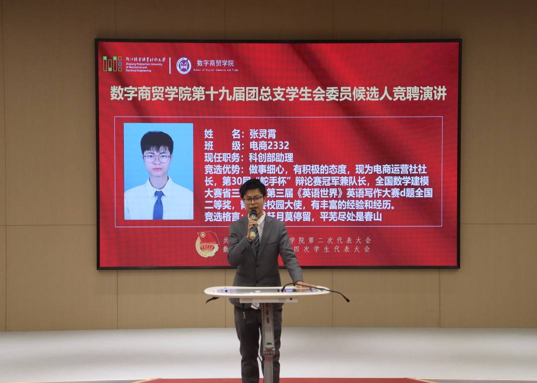 随后,依据大会议程,学院第十九届团总支学生会候选人根据抽签顺序依次上台进行竞聘演说。他们从自我介绍、团学经历、岗位理解、竞选优势以及未来展望等方面展开演讲,内容精彩纷呈且充满力量,每一位候选人都在发言中阐述了自己对工作的独特想法以及对未来的规划与展望,他们用真诚的话语抒发内心所想,展现出极大的热情与坚定决心,以炽热之心表达对团总支学生会工作的热爱。