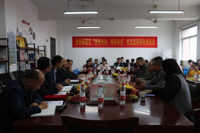 下午,经贸管理系校友返校日师生座谈会暨校友创新创业导师聘任仪式在系会议室举行。经贸管理系系主任葛永明、系党总支书记鲁明、系副主任朱伯伦、系党总支副书记符强、校友嘉宾、各返校班班主任、相关专业教师以及四十余位经贸管理系2006级毕业十周年校友代表参加了此次座谈会。校友们济济一堂,回忆往昔浓情岁月,共谋经贸发展宏图。