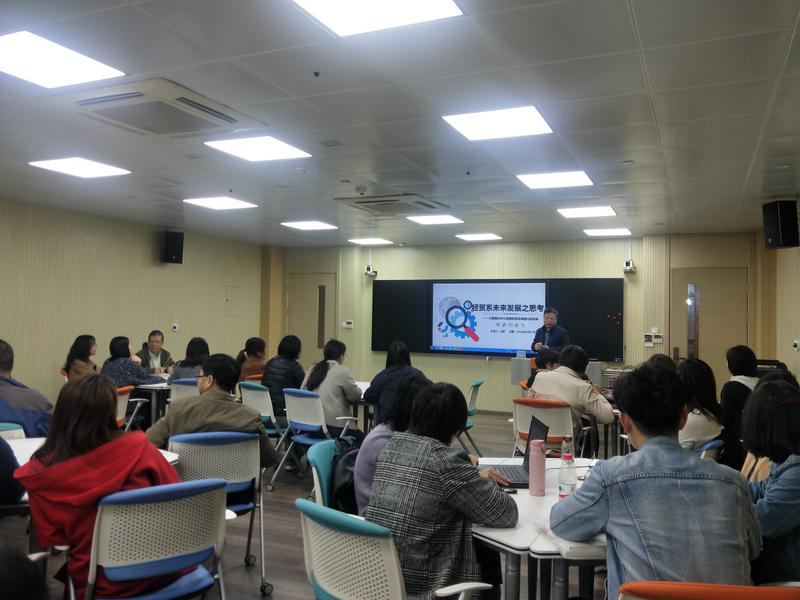 在研讨交流环节,系党总支副书记朱爱民老师强调了教师学习的重要性,在社会发展日新月异的背景下,要有危机意识。希望老师们对本次专题报告的内容进一步消化吸收,并融入到今后各项工作中去。与会教师围绕报告内容引出的思考与问题畅所欲言,对于如何解决当前经贸系专业发展与建设面临的短板问题,数字经济给人才培养带来的挑战,新技术的引入等进行了交流。