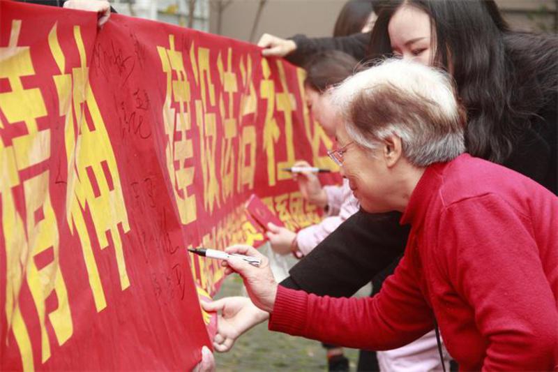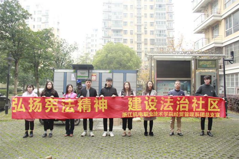 二是宪法宣传走进社区。12月4日宪法日当天,经贸管理系20余名学生党员、入党积极分子志愿者在该系党总支副书记朱爱民老师、学工办主任方惠玲老师的带领下,前往浦沿街道滨文社区开展以“弘扬宪法精神,建设法治中国”为主题的宪法日宣传活动。大家向社区居民发放宪法手册,向社区居民介绍宪法知识,并对交流中了解到的问题进行回复和记录。活动中,社区居民纷纷在“弘扬宪法精神,建设法治社区”横幅前驻足,并进行了签名。