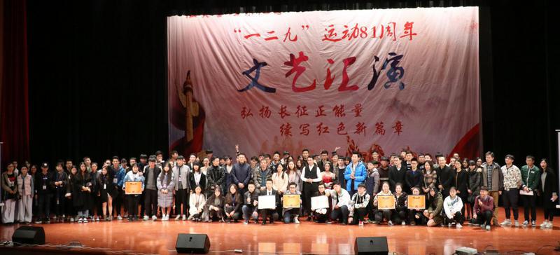 今年是“一二九运动”81周年,同时也是长征胜利80周年,为激发当代大学生的爱国主义热情,展示班级学生的精神风貌,将爱国主义精神融入校园日常活动,12月8日,经贸管理系在长安校区剧场隆重举办纪念“一二九运动”81周年班团文化节文艺汇演,校党委宣传部副部长熊峰、学生处副处长温长胜、系班子成员、新生班主任、长安校区辅导员观看了汇报演出。