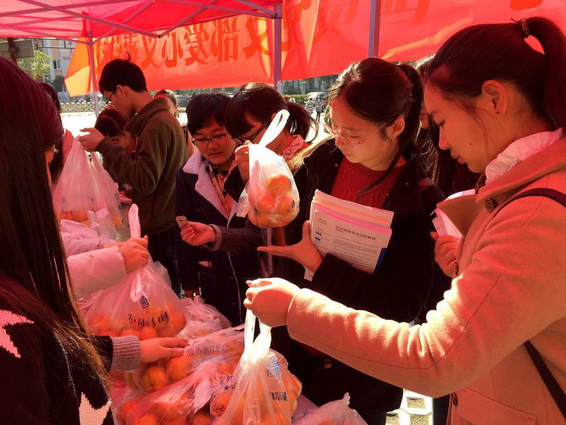 12月4日中午,下了10多天的雨终于停了,冬日久违的阳光温暖着大地,来自灾区的橘子静静等待浙江机电师生的到来。本次义卖活动受到了全校师生的热情响应,一位前来购买橘子的同学说:“我也是丽水人,自己家乡发生了泥石流我心里也挺难过的,很想为灾区的老乡做点什么,当得知我们学校的同学们在为他们进行义卖募捐,我就立马前来献爱心了”。有位老师买了几块钱的橘子,却额外捐了40元钱。有的老师、同学并不爱吃橘子,但得知是为丽水泥石流受灾的村民进行义卖募捐,便纷纷前来献出自己的一份爱心。义卖活动仅开始一小时所准备的500多斤橘子就全部卖出,还不时有师生来问橘子有没有?此次义卖共筹得善款1380元,将全部捐助给丽水里东村受灾的村民们。
