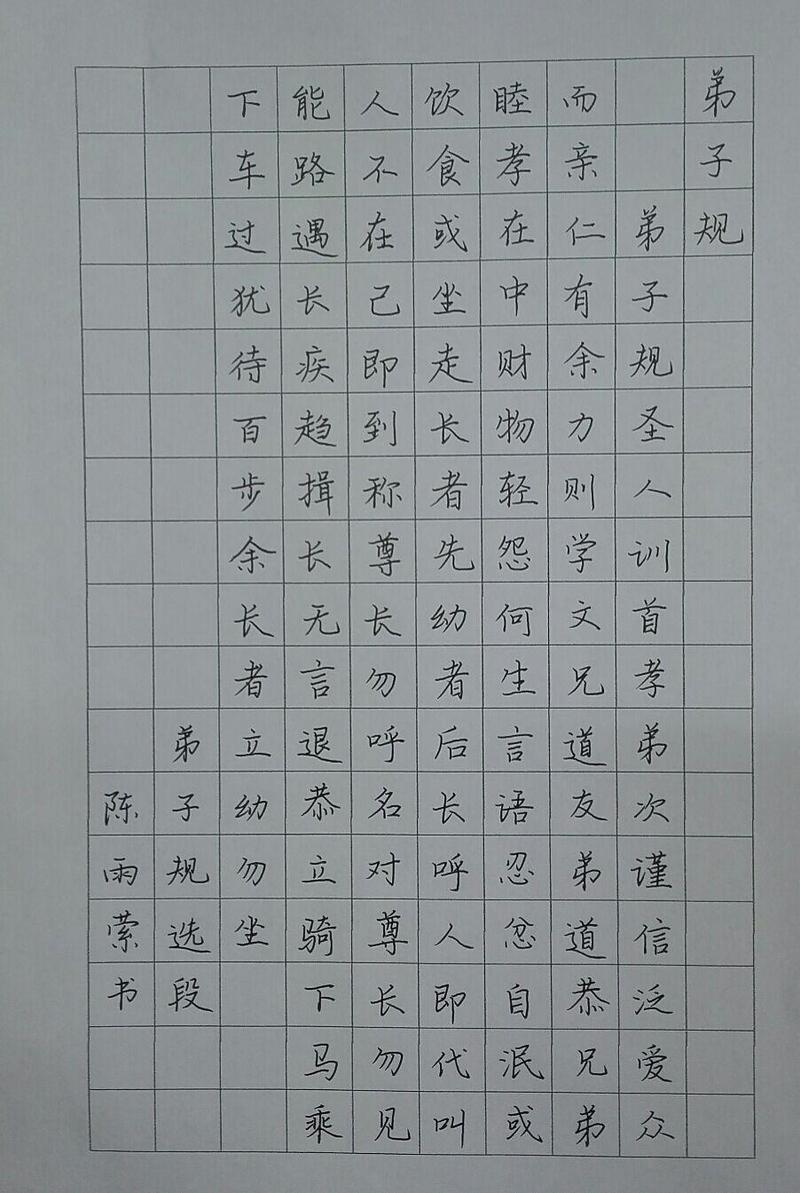 《弟子规》列述弟子在家、出外、待人、接物与学习上应该恪守的守则规范,共有360句、1080个字,三字一句,两句或四句连意,合辙押韵,朗朗上口,目的就是要对孩子进行启蒙教育,为将来成长和发展奠定基础。通过比赛,学生们在展示硬笔书法的同时也接受了一次国学教育。