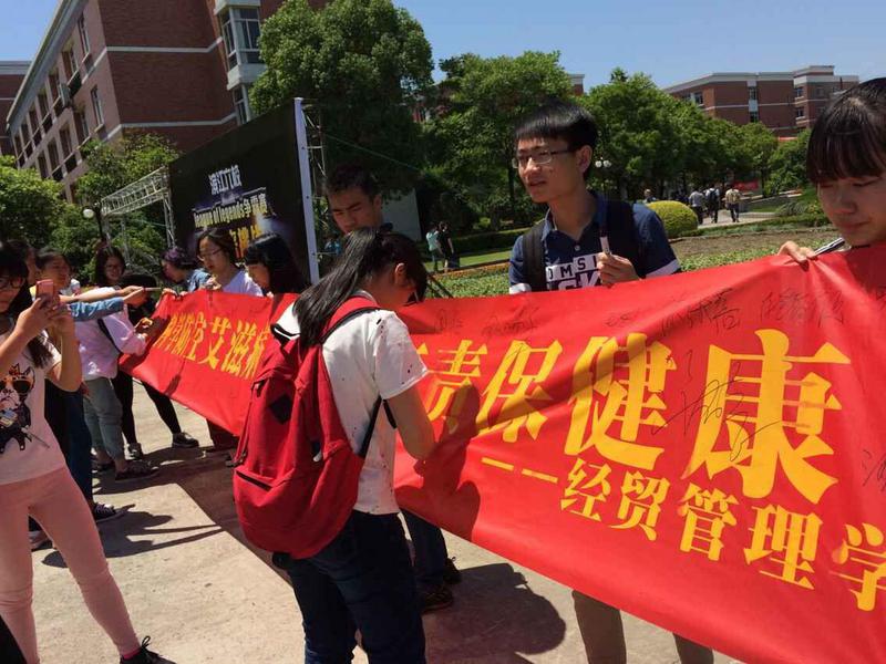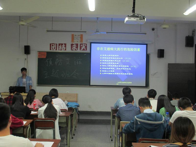 ,人人有责保健康”的横幅签名活动提醒广大学生,艾滋病就存在我们中间,唤醒同学们的防控意识。其次,向大一、大二在校学生发放艾滋病防治知识调查问卷,调查大家对防控艾滋病知识的了解。第三,组织学生召开以防控艾滋病为主题的班会,组织大家观看防控艾滋病影音资料,进行班级学习讨论。最后,每名学生都做了艾滋病相关知识试卷,巩固学习传达效果。