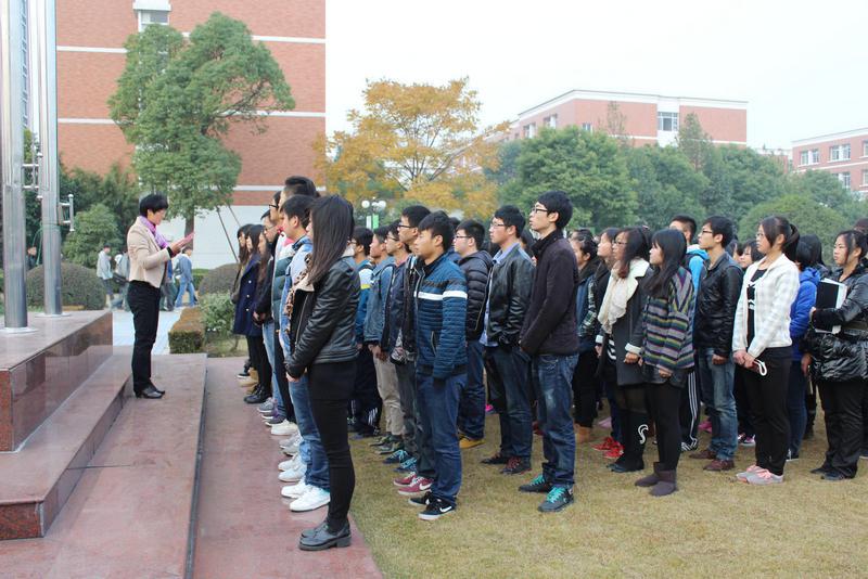 邵文娥书记在讲话中对全体参加升旗仪式的同学提了三点要求与希望:一、新形势下国际形势复杂,爱国是一种行动,更是一根准绳,在经济全球化背景下更要发扬爱国精神。二、培养良好的个人学习风气,带头搞好班级学风,加强文明寝室建设,锤炼意志品格,真正做到求实、求精、求新。三、专心致志、踏踏实实地学习,不光要学习专业知识,还要学习做人的道理,树立“诚信、务实、合作、奉献”的理念,弘扬“浙商精神”,将自己塑造成“新生代阳光未来新浙商”。