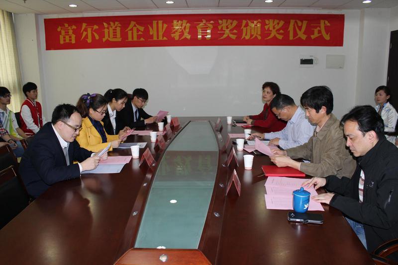捐资助学,大爱仁德。4月9日下午,2013年度富尔道企业教育奖颁奖仪式在学校综合楼1101会议室举行。天津富尔道贵金属经营有限公司董事胡海雁,学生处处长项建斌,经贸管理学院院长包发根、副院长朱伯伦、会计教研室主任陈颜贞,获奖学生与项目团队代表出席了仪式。