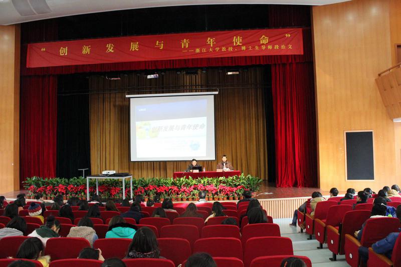 段教授用幽默生动的语言首先从五个方面讲述了创新发展的重要性:一是创新——新经济时代的灵魂;二是时代呼唤学习型社会与创新型国家建设;三是政治素养的提升对于青年创新发展的重要意义;四是创新创业——浙江案例;五是当前的政治形势认识。接着,段教授向同学们分析了当代国情及国际形势,并举出许多生动有趣的实例,使整个讲座氛围深刻而生动,全场不时响起热烈的掌声。