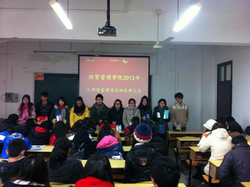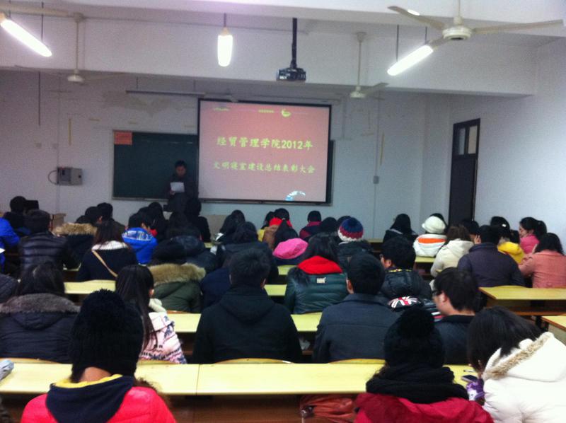 1月5日,我院在4号楼401教室隆重举行2012年下半年文明寝室建设工作总结表彰大会,各班班长、团支书与团总支学生会干部参加大会,全体辅导员老师出席大会,大会由党总支书记程勤华老师主持。
