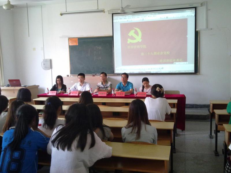 2012年5月16日下午2点,我院在4号楼201教室隆重举行了第二十九期业余党校培训班结业典礼。出席本次结业典礼的领导有学院党总支书记、业余党校校长程勤华老师,会计专业党支部书记朱爱民老师和管理专业党支部书记方惠玲老师,结业典礼由团总支书记兼辅导员余涛老师主持。