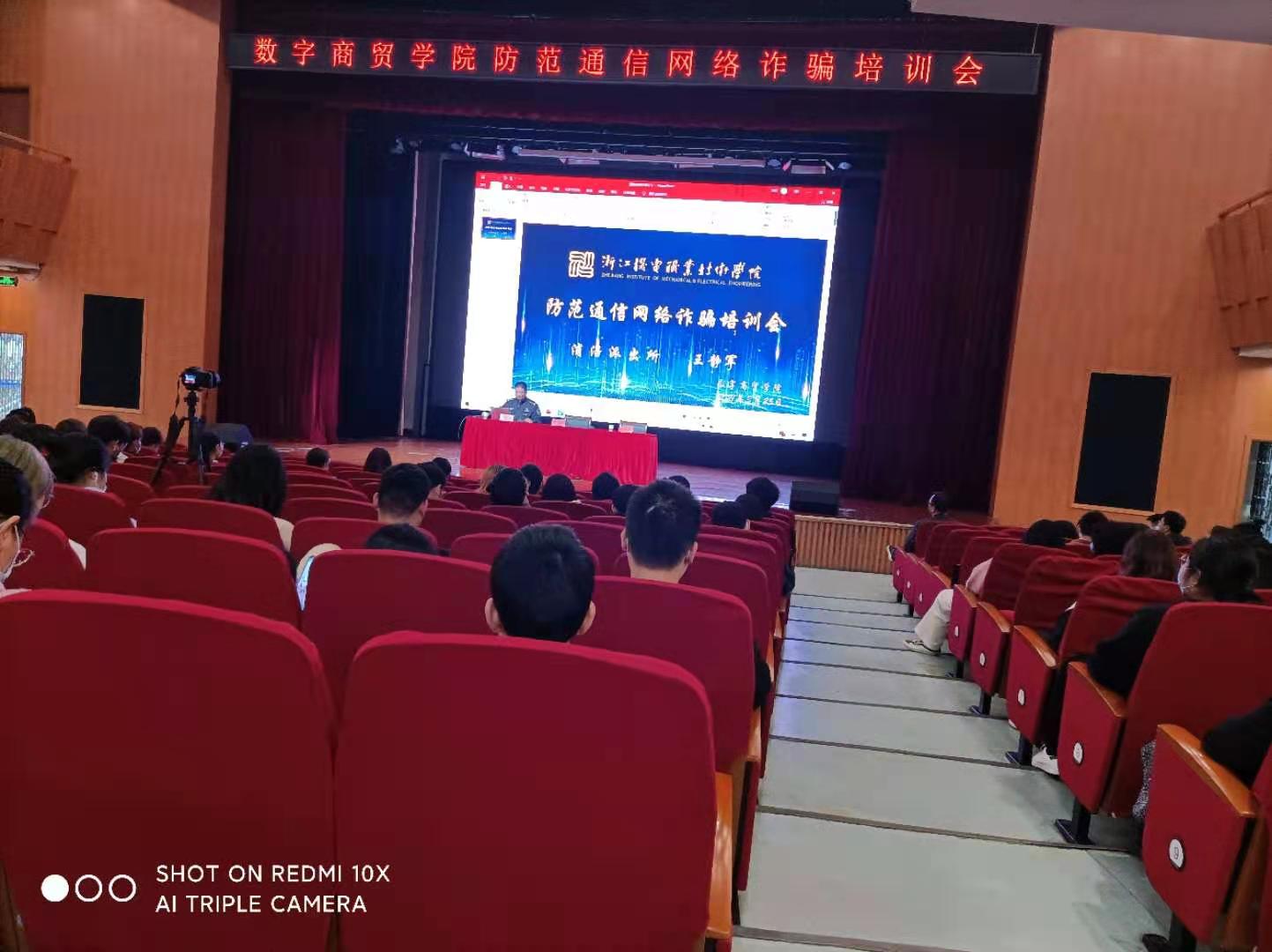 为进一步强化学生的安全防范意识,提高对通信网络诈骗的识别和应对能力,3月26日晚数字商贸学院举办防范通信网络诈骗培训会。本次培训会由滨江分局浦沿派出所王静军警官主讲,数字商贸学院总支副书记符强老师主持,19级各班级学生代表到场聆听。