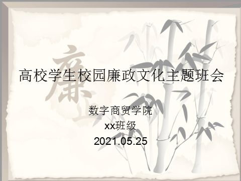 2021年5月17日至2021年5月25日期间,数字商贸学院19级、20级各班利用课余时间召开廉政文化主题班会。