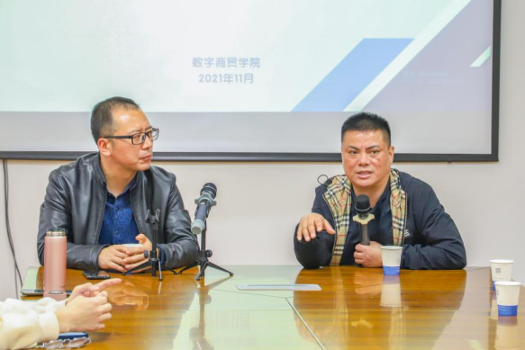 11月17日下午数字商贸学院在2号楼312举行了“双创”训练营系列活动之“导师咖”讲座。莅临本次活动的嘉宾有台州市黄岩瑞丽模塑股份有限公司董事长、优秀校友应义聪,数字商贸学院专业老师杨晓明,党总支副书记符强,训练营四十余名同学参加此次讲座。
