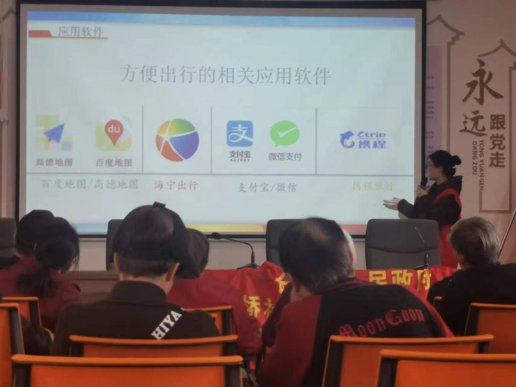 志愿者们采取由大到小、由浅到深的方式为老年人详细讲解如何使用高德地图、海宁出行(公交、轻轨及自行车)、携程旅行、铁路12306等常用出行软件。同时,针对老年人的有关使用疑惑,同学们耐心细致的予以解答, 并向老人们普及了交通安全知识,提醒保管好自己的随身物品。