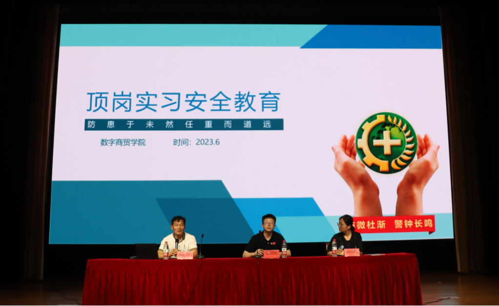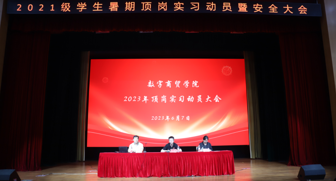 为进一步促进专业顶岗实习规范有序开展,扎实稳固做好2023年专业顶岗实习工作,6月7日下午,数字商贸学院组织召开了2023年专业顶岗实习动员暨安全教育大会。学院副院长廖润东老师、教学办主任路红梅老师出席会议,2021级全体同学参会,会议由学院合作办主任陈银锋老师主持。
