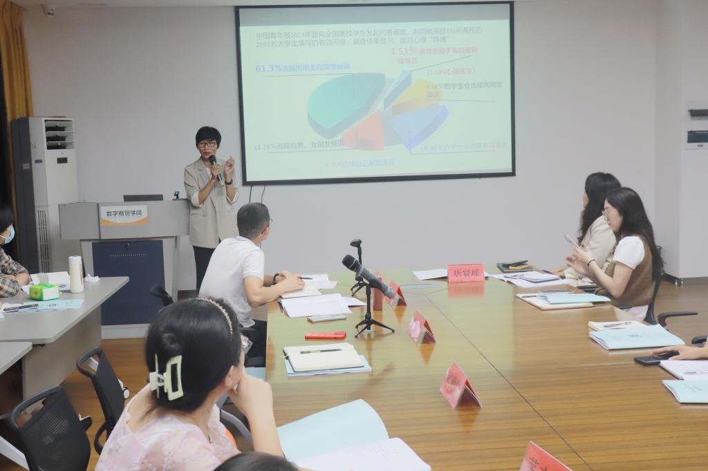 班主任工作是学校德育工作的关键,是学生工作的重要力量,为进一步加强班主任队伍建设,确保新学期各项工作的有序开展,数字商贸学院于9 月 1 日开展新学期班主任培训会议,会议由学工办主任杨秀飞主持,学院党总支书记程勤华、党总支副书记李君、各年级班主任及全体辅导员参会。