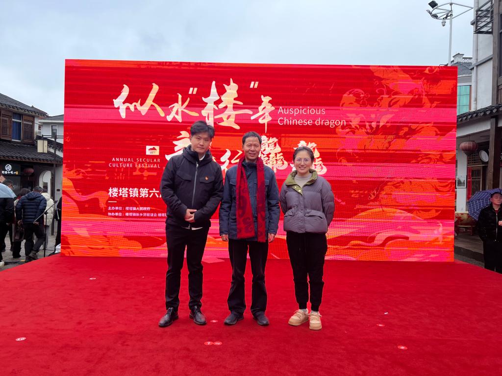 2024年2月2日,数字商贸学院党总支书记程勤华一行应邀参加杭州市萧山区楼塔镇举办的第六届年俗文化节开幕式,并在活动中与楼塔镇签订党建联建校地共建协议。