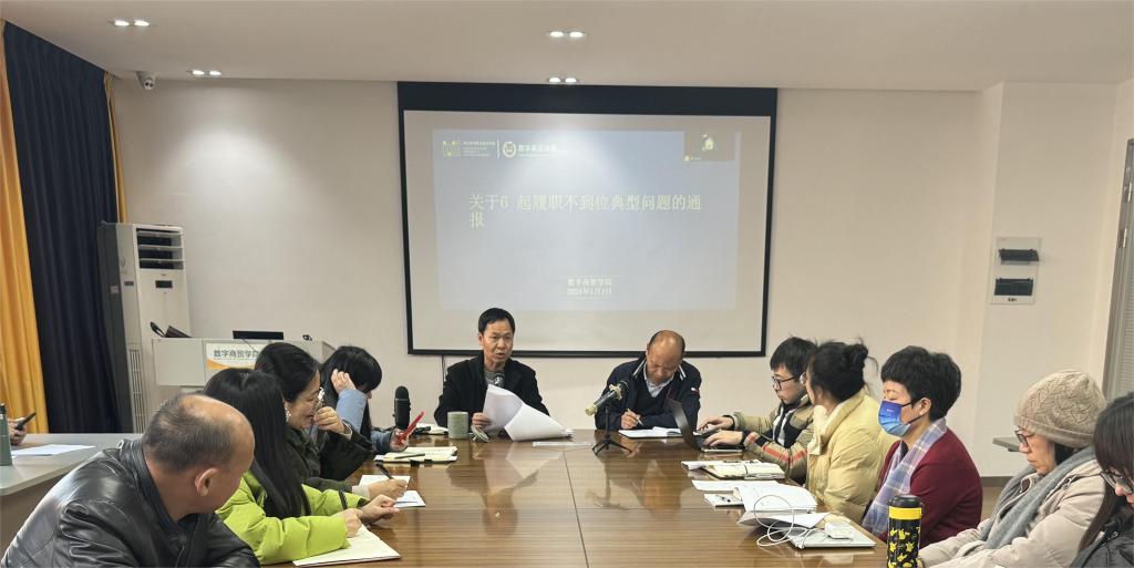 1月3日,数字商贸学院召开“四治四促”作风建设专项行动专题会议,全体教职工与会。