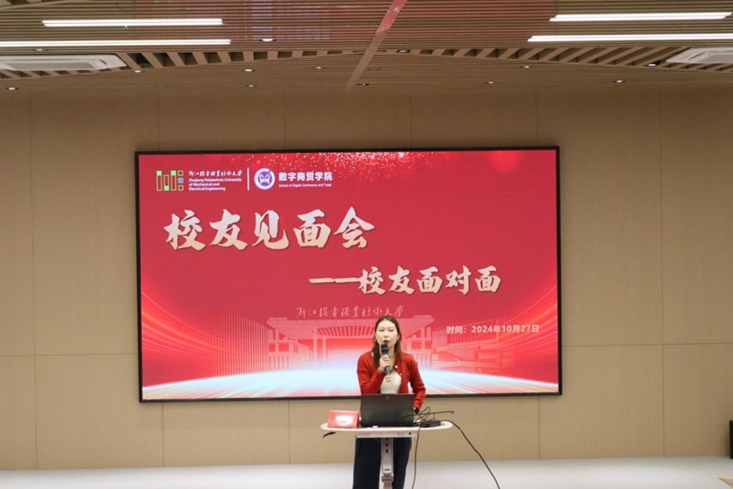 为倾听校友成长故事,传承优秀品质,激励在校学生立志成才,明确自身发展目标,更广泛、更有效地发挥校友的榜样力量,10月27日下午,数字商贸学院在海宁校区报告厅举办“对话青春榜样-校友见面会”活动。活动由数字商贸学院辅导员秦勇青主持,学院团学组织代表到场聆听,旨在通过聆听优秀校友成长事迹,引导在校生树立正确的人生观和就业观。