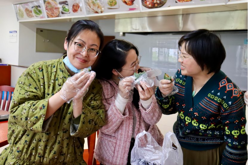 制作好的青团由食堂工作人员摆入蒸锅,等待之际,学院组织同学们参加答题互动游戏,通过答题游戏增长对清明传统文化的了解。开锅绿翡翠,遥知青团来,绿绿的软糯的皮儿,带有清淡艾草香气,香糯可口。“自己亲手制作的青团,就是好吃!”师生纷纷表示初次体验包青团,感受到了不一样的春日味道,兴奋且有趣。