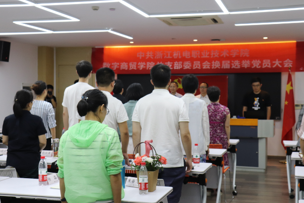 9月9日下午,数字商贸学院党总支部委员会换届选举党员大会在庄严的国歌声中拉开序幕。全体党员教师参会,学校党委委员、副院长丁明军出席本次会议。大会由数字商贸学院党总支书记、院长葛永明主持,