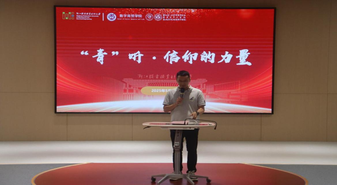 信仰如炬,照亮奋斗之路,初心如磐,凝聚青春力量。为深入学习贯彻党的二十大和二十届三中全会精神,弘扬新时代职业精神,数字商贸学院团总支联合海宁市中心医院于5月21日下午在19-106举行第八期青马班“青‘听'信仰的力量”职业精神宣讲主题沙龙。