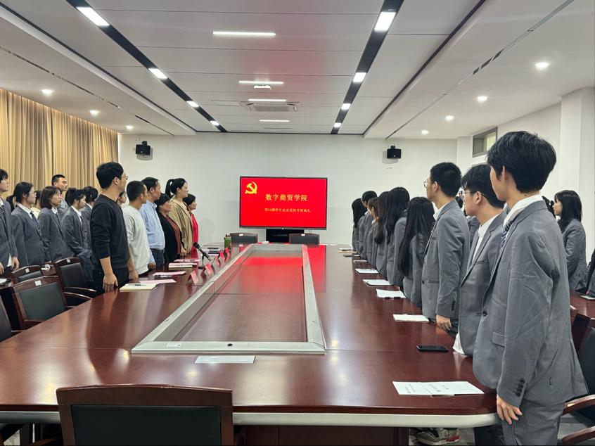 10月24日下午,数字商贸学院在海宁校区21-205举办第54期学生业余党校开班典礼。出席本次开班典礼的有数字商贸学院党总支书记程勤华老师,数字商贸学院党总支副书记李君老师,数字商贸学院教工党支部宣传委员谭娟老师,数字商贸学院会计专业党支部书记杨秀飞老师,电子商务专业党支部宣传委员孙国权老师,跨境电商专业党支部宣传委员唐寰瑶老师以及全体第54 期业余党校的学员。