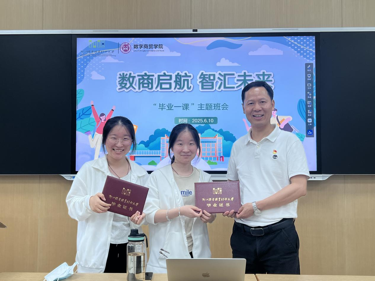学院举行“数商启航,智汇未来”毕业主题班会,各毕业班主任为毕业生颁发毕业证书,叮嘱离校前各类安全注意事项,院领导走访各班级并参与班会活动。