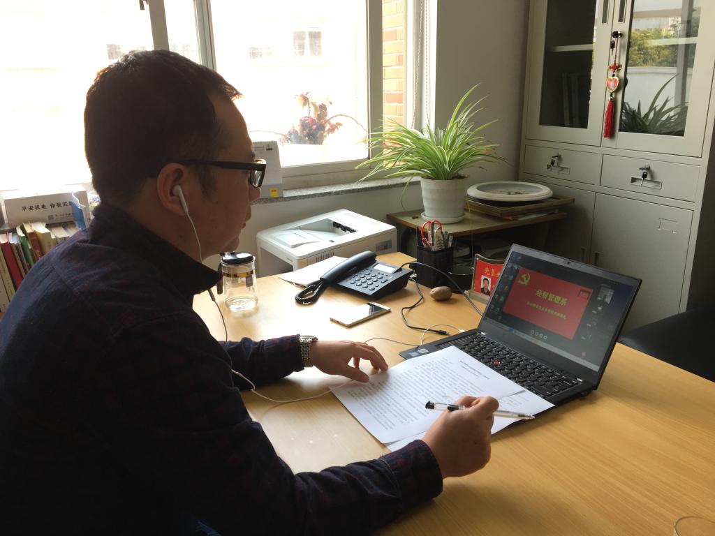 最后,数字商贸学院党总支副书记符强老师讲话,他概括了本次疫情的基本情况,对于在此次疫情中涌现出的同学们的各类志愿服务行为进行了肯定和表扬,同时也勉励在坐的各位同学在今后的工作和学习中发挥榜样带头作用,以党员的标准要求自己;其次,他强调了理想信念的重要性,指出各位同学要坚定理想信念,自觉增强党性修养;最后他对所有学员提出要求,在加强理论学习的同时增强实干本领。