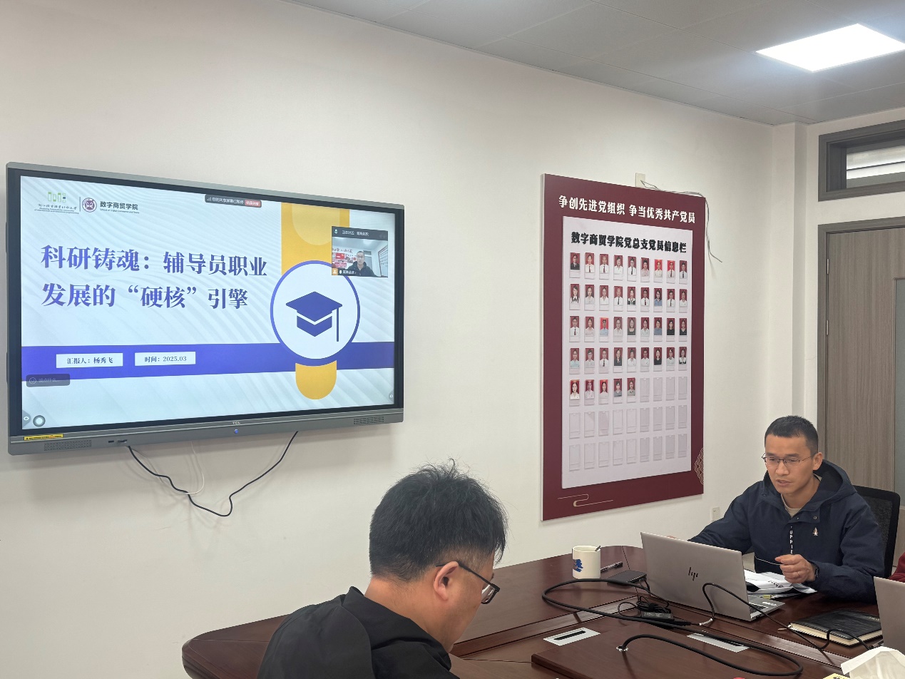 为深入学习贯彻习近平总书记关于教育强国的重要论述,落实立德树人根本任务,着力打造一支高素质专业化职业化专家化的辅导员队伍,提升大学生思想政治教育工作实效。3月31日数字商贸学院“心流”辅导员工作室在21-305举办“AI引领·科研突破”辅导员科研下午茶学术沙龙活动。本期活动特邀了数字商贸学院学工办主任杨秀飞做“科研铸魂:辅导员职业发展的“硬核”引擎”主题交流,活动由数字商贸学院党总支副书记李君主持。