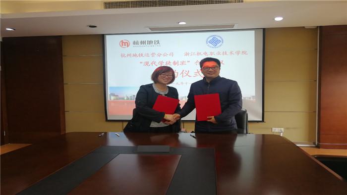 11月22日上午9点30分,在杭州地铁七堡综合楼1207会议室,我院与杭州地铁集团运营分公司举行了“现代学徒制班”合作协议签约仪式。我院交通技术系主任边浩毅、城市轨道交通机电技术专业主任曹昕鸷、杭州地铁集团运营分公司组织与人力资源总部部长何眉佳和组织与人力资源总部培训管理部副部长陈露露等出席了此次会议。