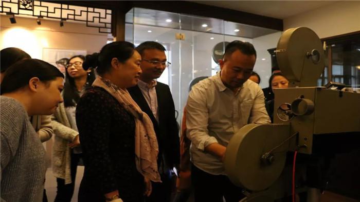 活动伊始,南岸艺术中心的田音泉老师带领党员教师们参观了艺术中心的扎染、杭绣、书法成列等展示区域,田老师对展品进行了详细的讲解,让大家进一步了解了中华优秀传统文化。南岸茶社社员为大家展示了精彩的桂花红茶茶艺表演,让教师党员们在欣赏与品茗中更好地体验和感受中华优秀的传统文化。老电影工坊导师王卫星老师为大家讲解老电影设备、胶片、红色经典电影海报,并且用老电影放映机为大家播放了一卷胶片,随后党员教师共同观看红色经典电影《张思德》。活动尾声,党支部书记宋伟文老师向支部党员赠送政治生日贺卡,党员同志们共同重温入党时刻,共度政治生日。