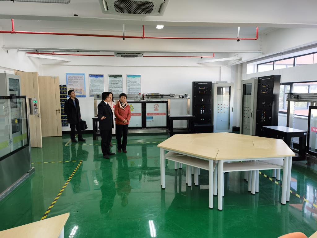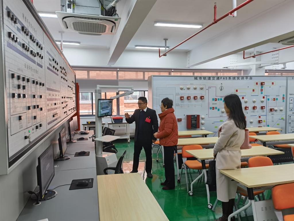 谢平董事长一行走进每一间实训室深入考察实训基地的建设情况,仔细听取了边浩毅院长关于实训基地整体建设方案、楼层功能布局、实训室软硬件配置和使用情况、城市轨道交通机电技术专业建设成果、校企合作成果、“1+X”证书考证、人才培养模式、学生就业创业等相关情况的汇报。领导一行还在现场观摩了正在开展的理实一体化专业课程,并与正在上课的师生进行了交流。