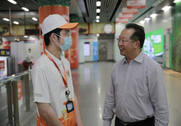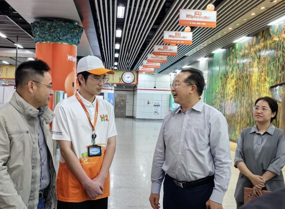 走访过程中,陈副总经理与学生志愿者亲切交流,详细了解志愿者的工作内容、工作时间以及面临的困难。他表示,通过参与亚运地铁服务志愿者工作,大家都得到了锻炼和成长,不仅提高了自己的专业技能,还培养了团队协作、沟通协调等综合素质,为今后的发展打下了坚实基础。他还对志愿者们放弃假期坚守岗位无私奉献的精神表示充分肯定,勉励志愿者们继续努力,站好亚运服务保障最后一班岗。