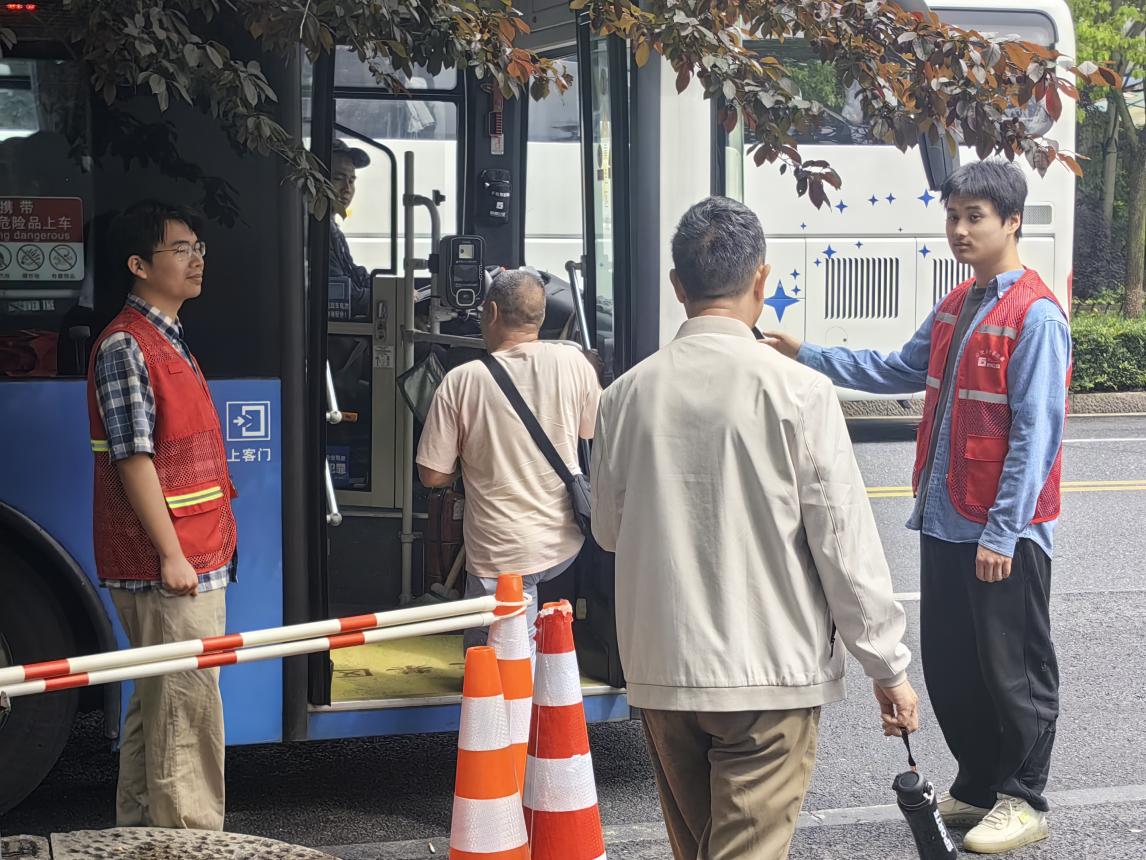 4月21日,交通青年服务队再度出发,本次前往西湖景区的玉虎路公交站、将台山公交站、苏堤公交站三个站点。在智慧交通学院王怡老师的带领下,早上8点半已在西湖景区各站点准备开始今天的志愿服务。