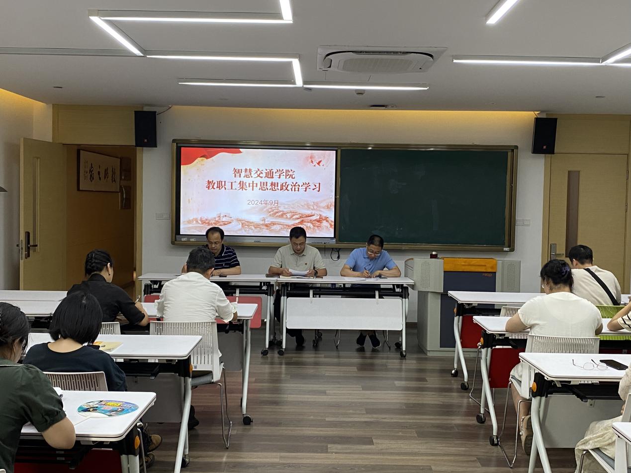 9月11日,智慧交通学院在JF301召开学期初全体教职工大会,深入学习贯彻党的二十届三中全会精神和省委十五届五次全会精神,传达学习学校中层干部暑期培训会精神,结合校党委书记汤兆武的主题报告,对新学期开学工作进行全面部署。