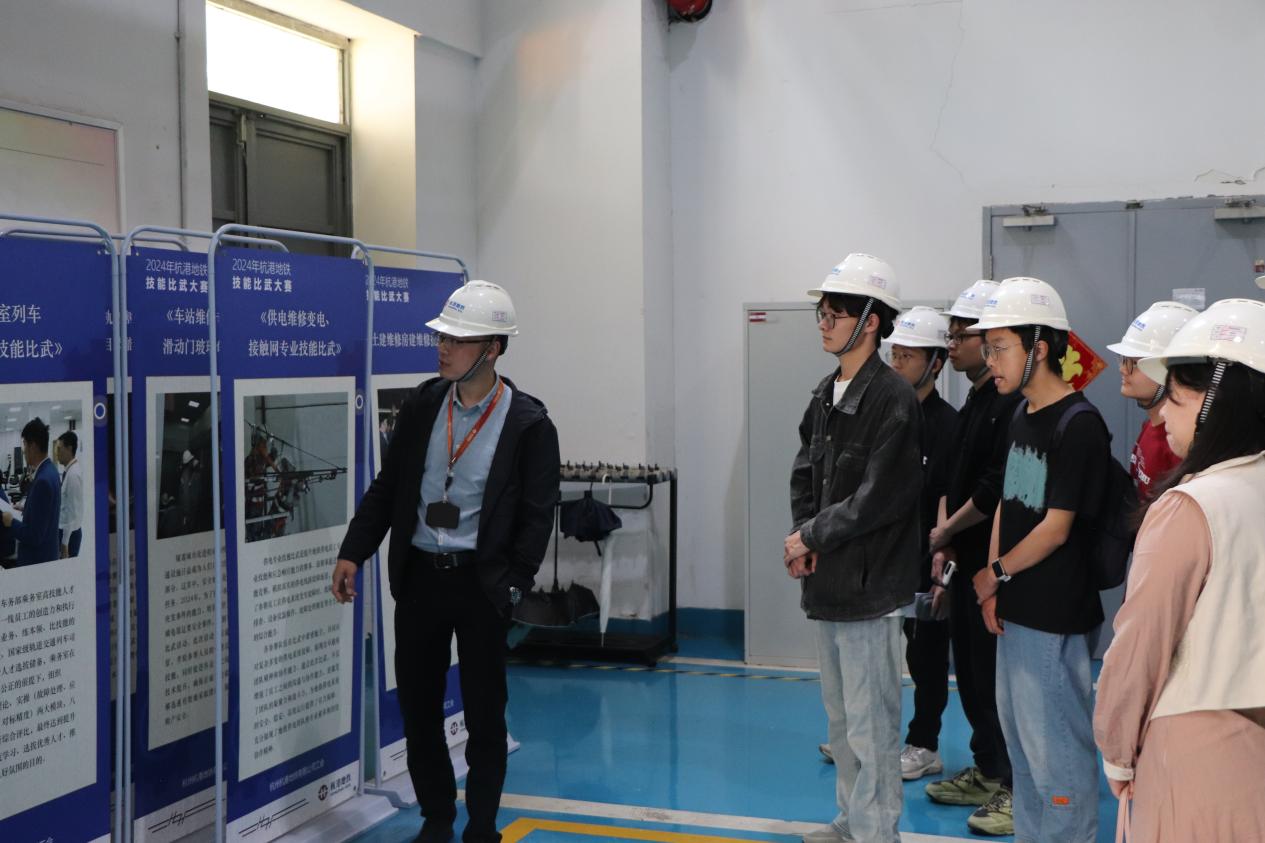 次日,师生代表来到杭港地铁公司,深入探索校企协同育人的创新实践。作为学院长期合作的订单企业,杭港地铁每年接收学院城轨专业的优秀学生进入订单班。此次交流活动也是城市轨道交通机电技术教研室党支部、城市轨道交通机电技术学生党支部与杭港维修二支部开展杭港地铁贴心服务队的又一次党建共建活动。