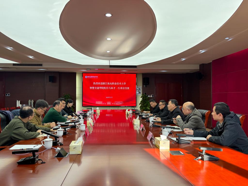 当日下午,调研团队赴南京交通职业技术学院继续交流。学院党委副书记文爱民详细介绍了学校在专业建设方面的实践,特别是在城市轨道交通、汽车类专业建设等方向的政策把握、人才定位、课程认证与师资培养机制。马林才院长高度评价南京交院在专业布局与产业对接、“名师训练营”“青年教师培养营”等方面的做法,表示相关经验为我院结合浙江产业结构优化专业设置提供了有益借鉴。