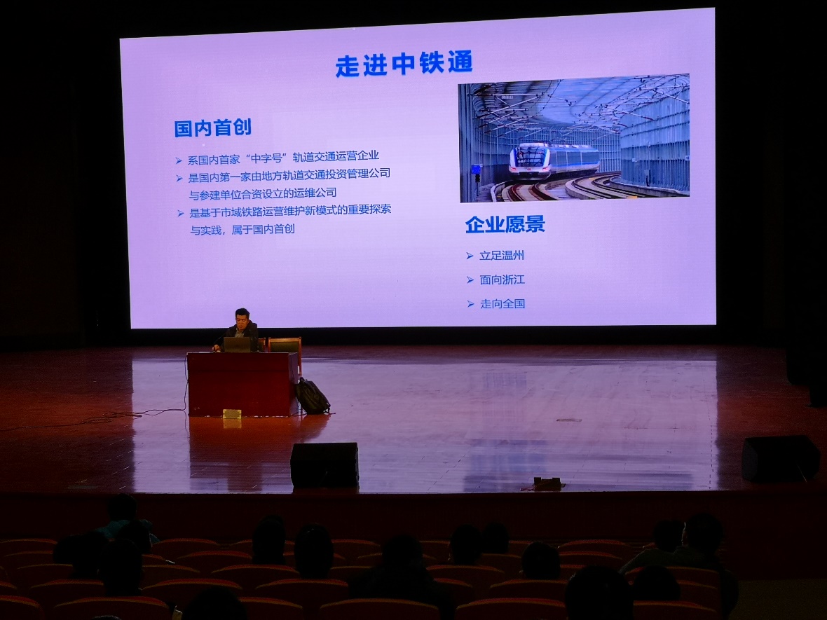 为加快推动落实校企合作人才培养协议,3月19日下午,温州中铁通轨道运营有限公司在taptap点点海宁校区开展了订单班宣讲会,公司人力资源部部长闵永超、业务经理曾令波出席宣讲会,智慧交通学院副院长王循明主持会议,分院城市轨道交通机电技术专业2020级全体学生参加了宣讲会。